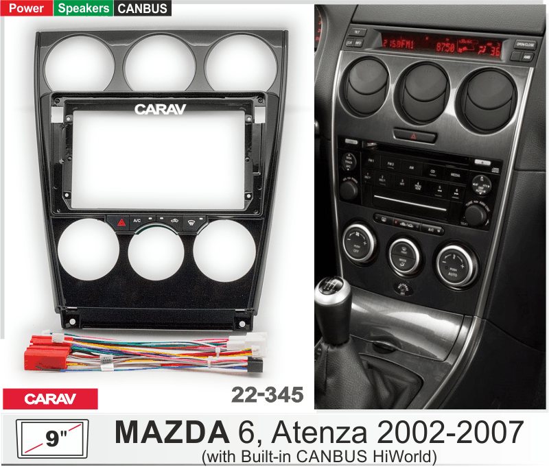 —CARAV 22-345 (9 дюйм. монтажная рамка для а/м MAZDA 6, Atenza 2002-07 (CANBUS Ruishengwei)
