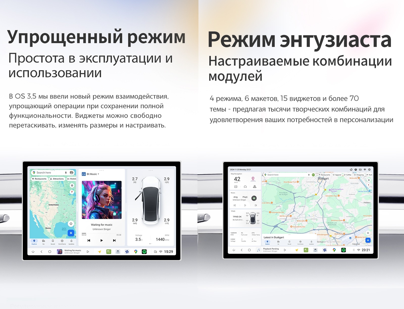 | Bluetooth | Поддержка громкой связи, книги контактов на русском языке, истории звонков, воспроизведение музыки. |